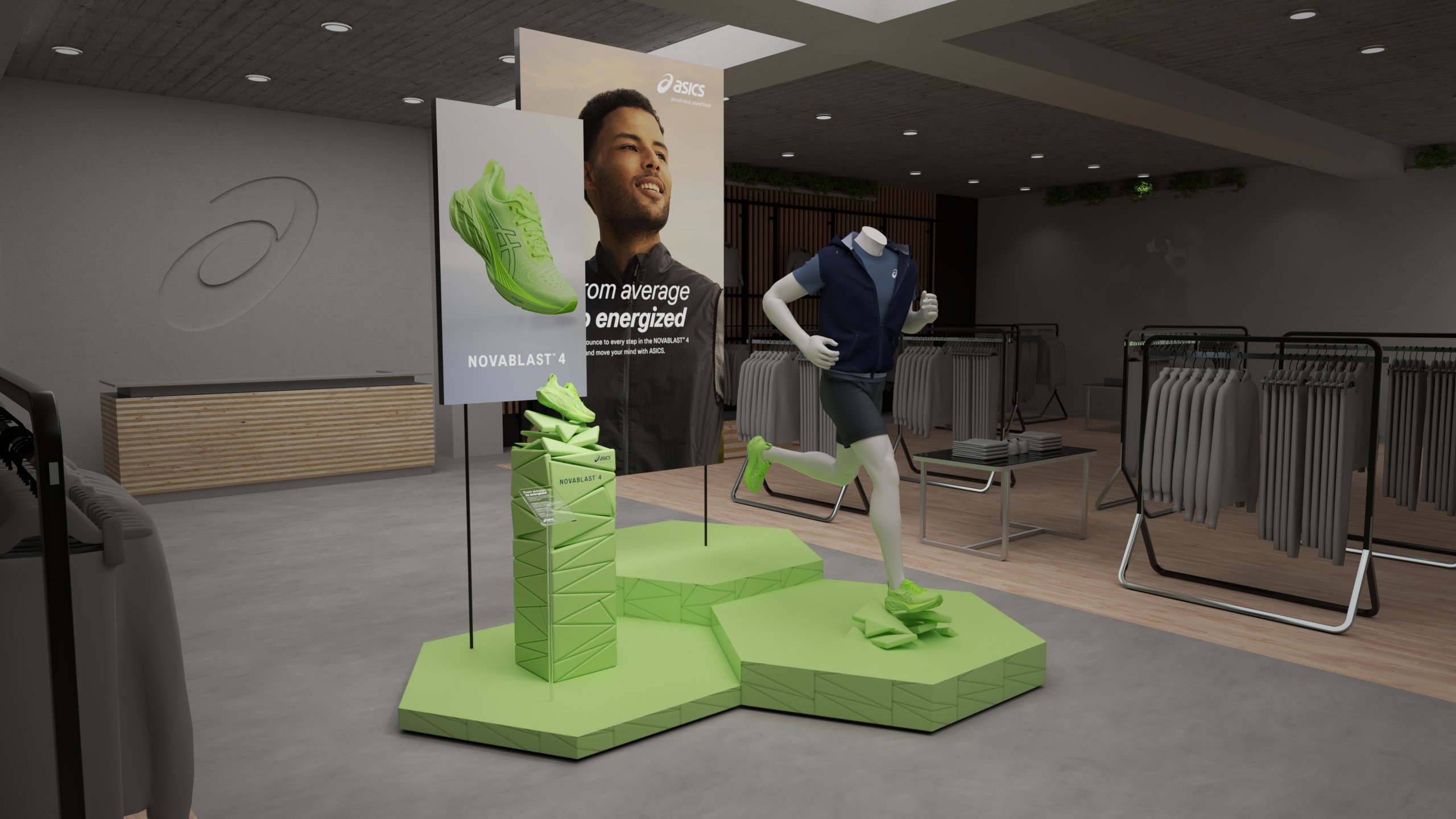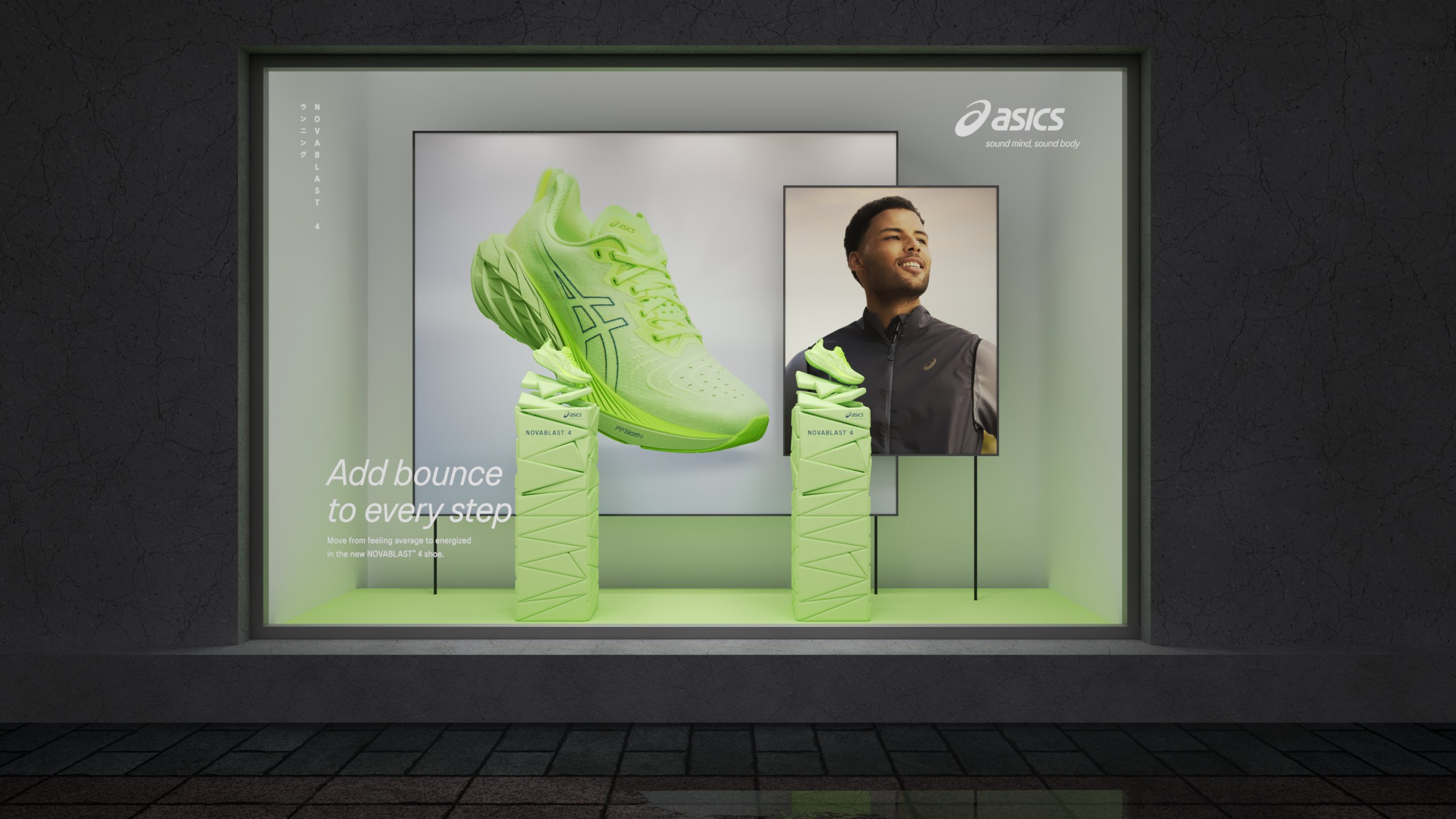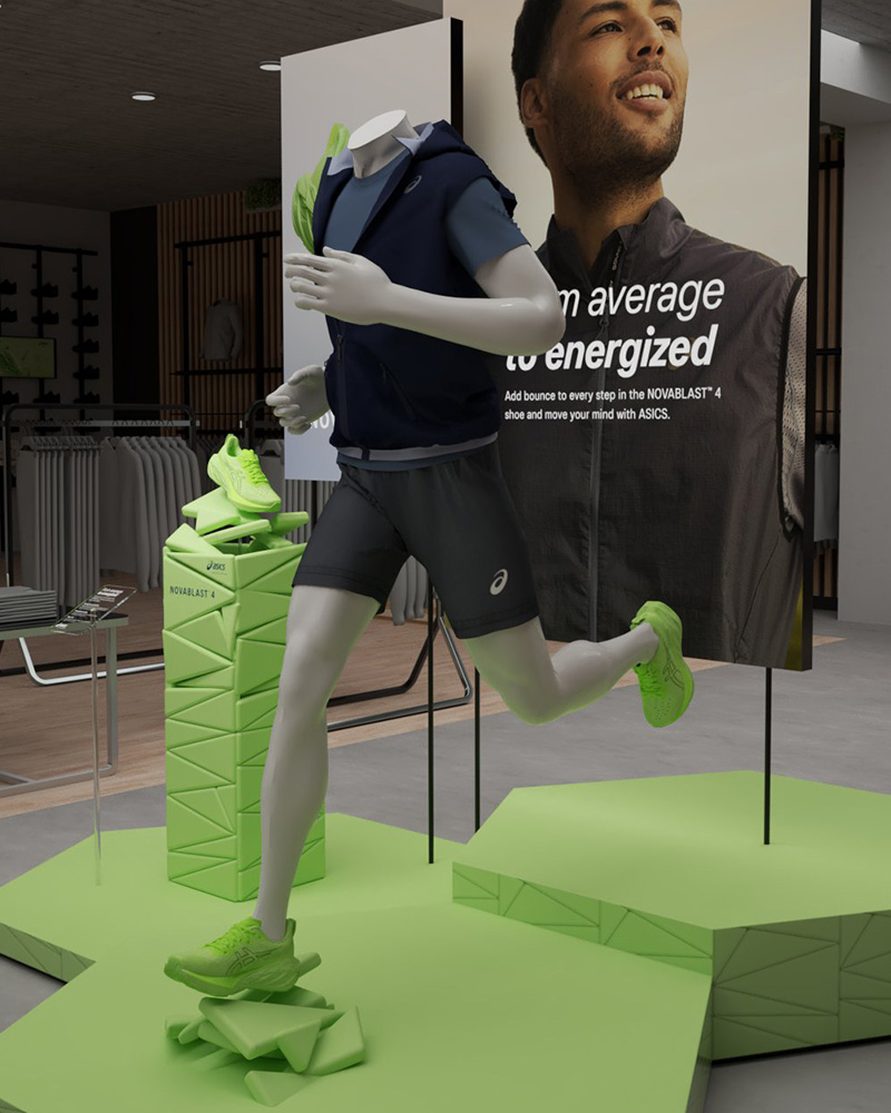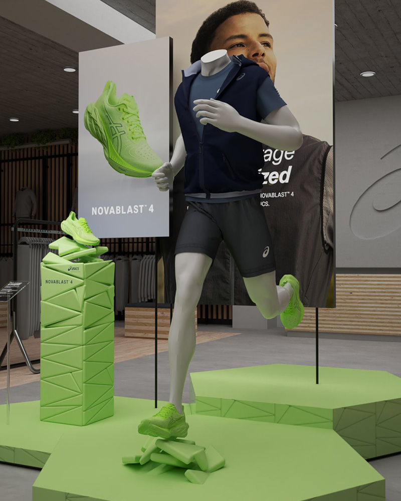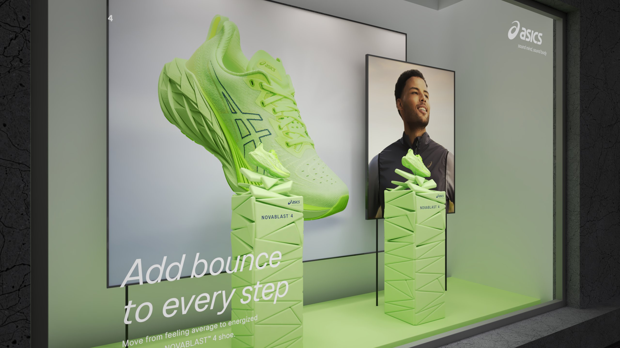 For the new Novablast™ 4 running shoe we were commissioned by ASICS to create their retail campaign. Packed with incredible bounce and unparalleled energy return, we encapsulated the essence of this innovative shoe by showcasing dynamic 3D foam particles, inspired by their groundbreaking Blast FF foam technology. From local stores to international markets, our globally rolled out campaign perfectly captured the excitement and resilience of this footwear. It was an absolute pleasure bringing this project to life.